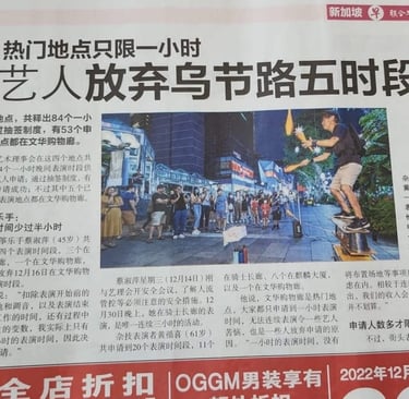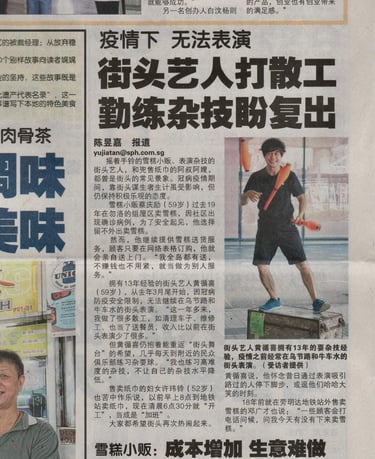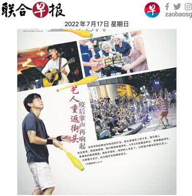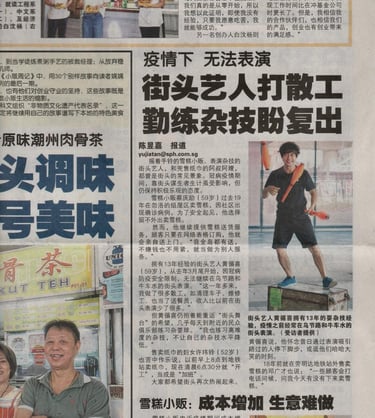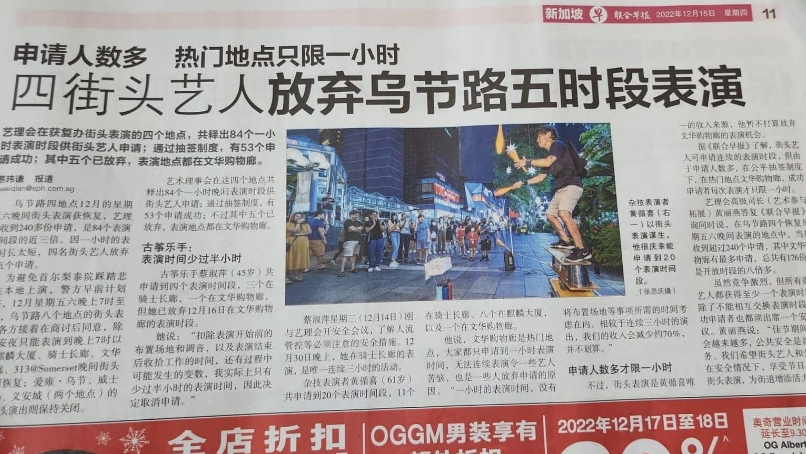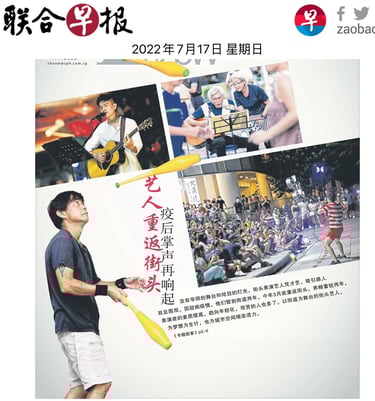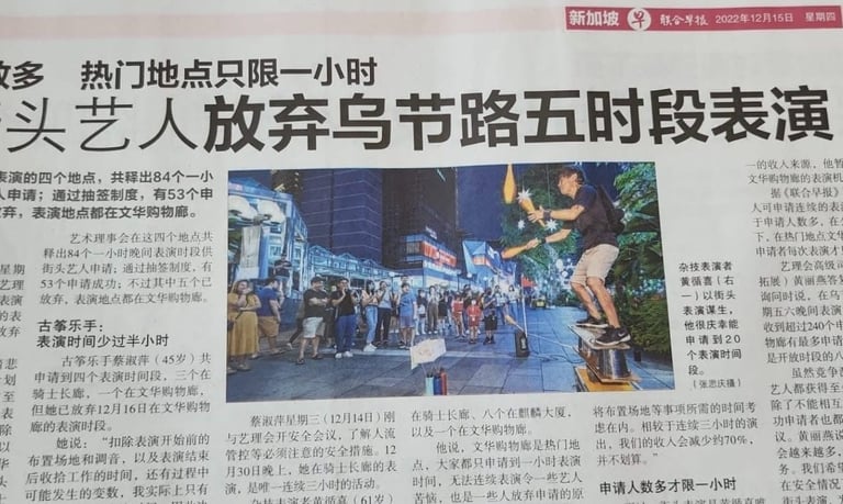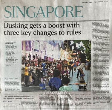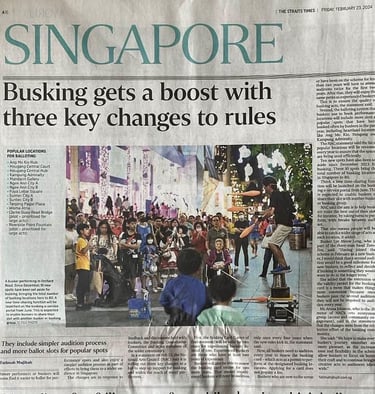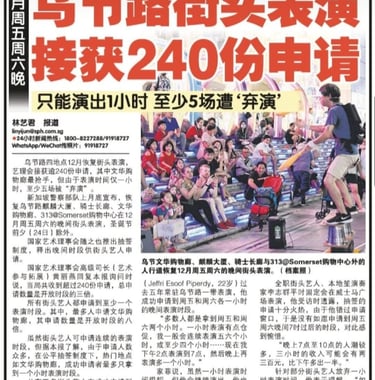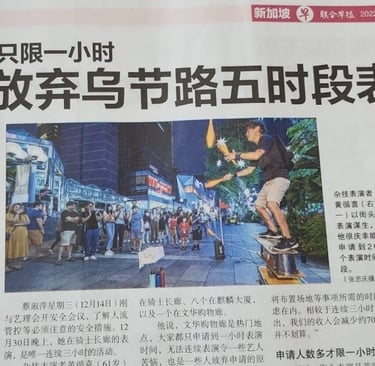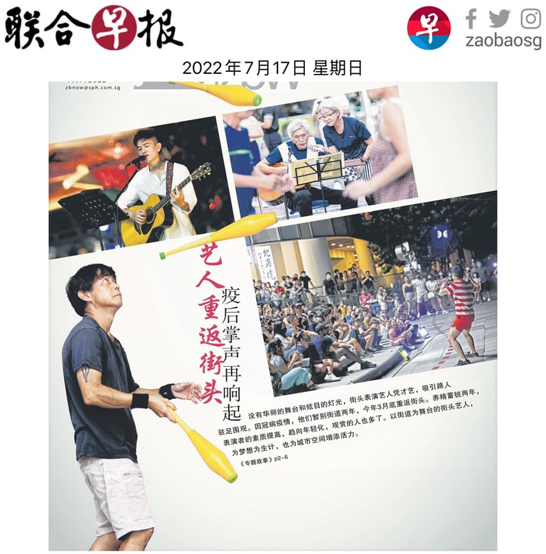 Then-Prime Minister Lee Hsien Loong watching on intently as H the Juggler performs the balancing act, AKA Rola Bola, along Orchard Road.