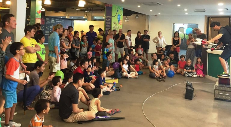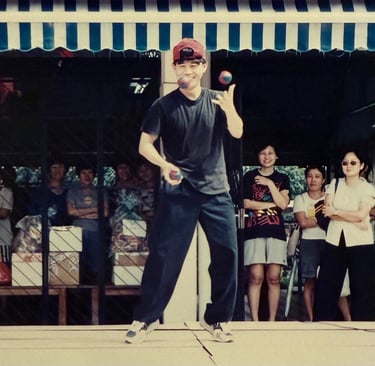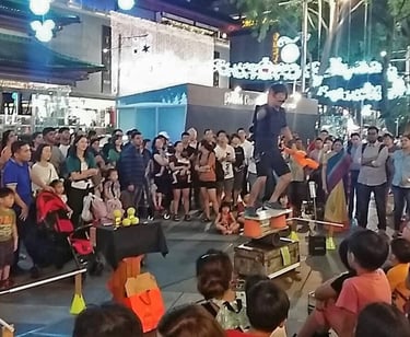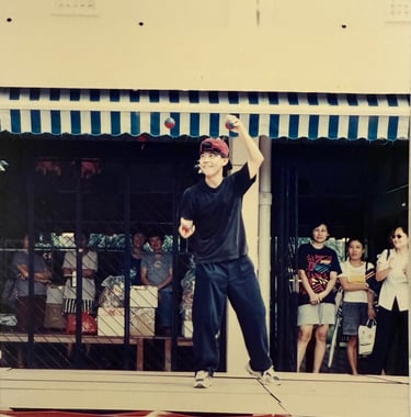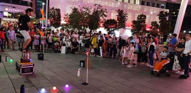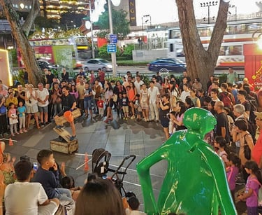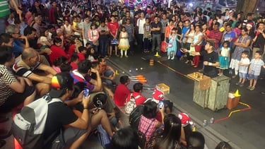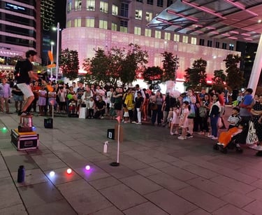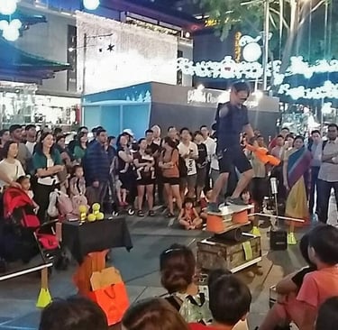 A popular crowd stopper for 20 years. Here are some photopraphs of the crowds that form up to watch H the Juggler perform.