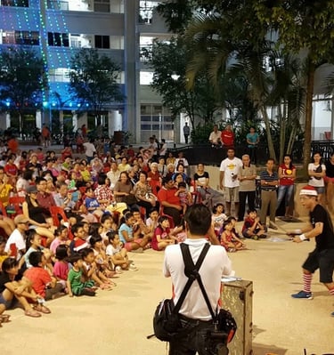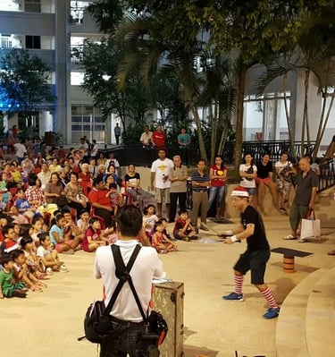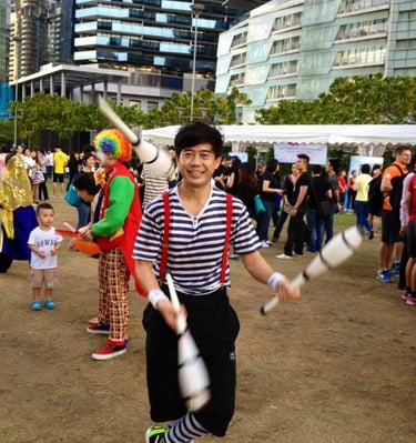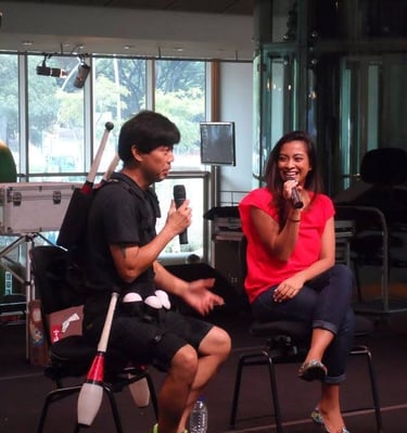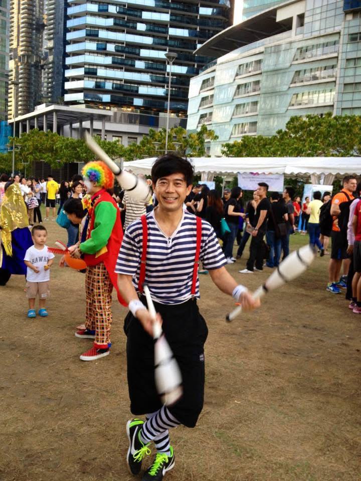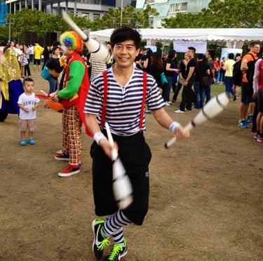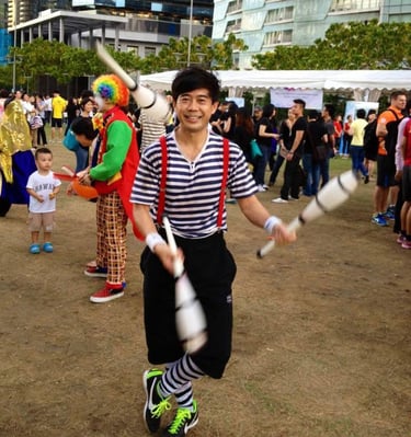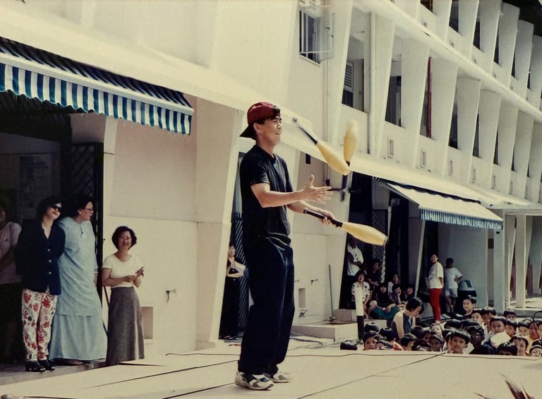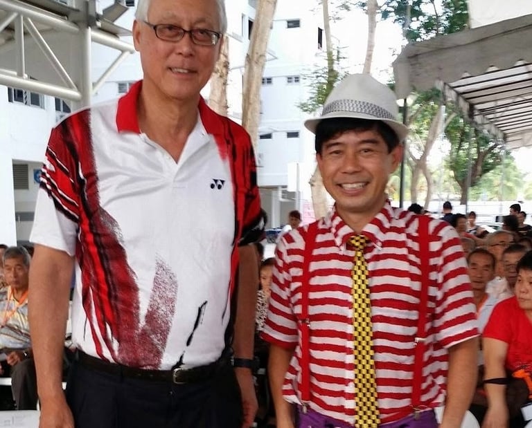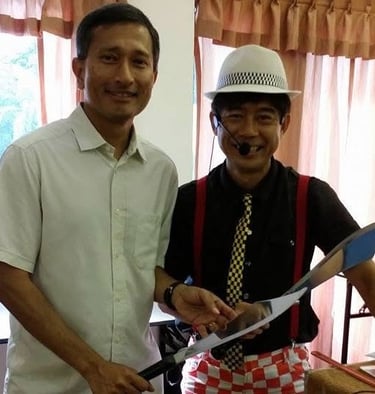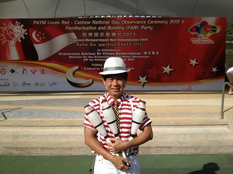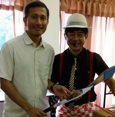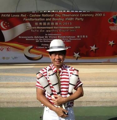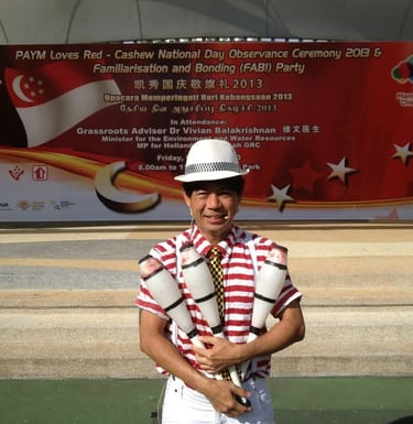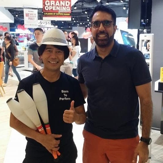 Minister Vivian Balakrishnan amazed to see that the Juggling knives were real. Posing for a picture at a grassroots event.