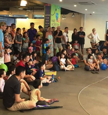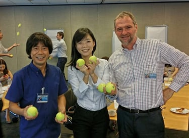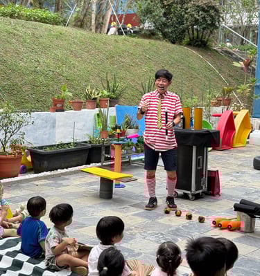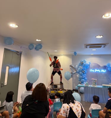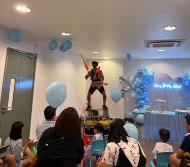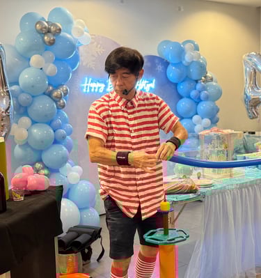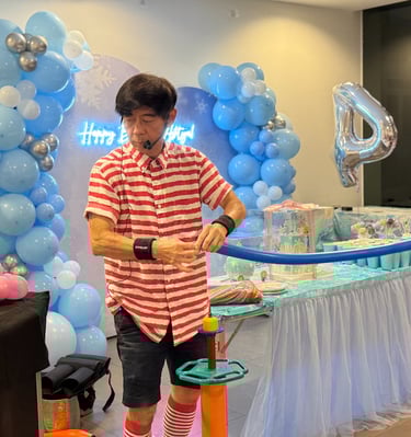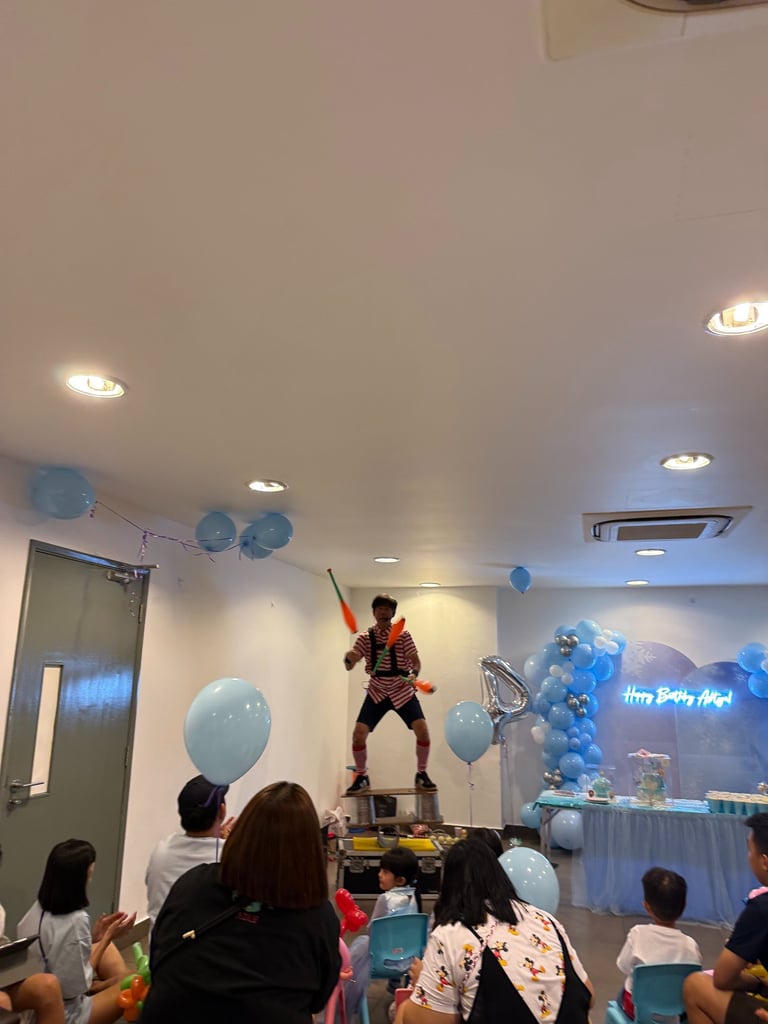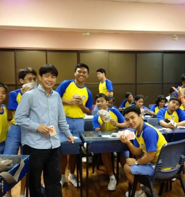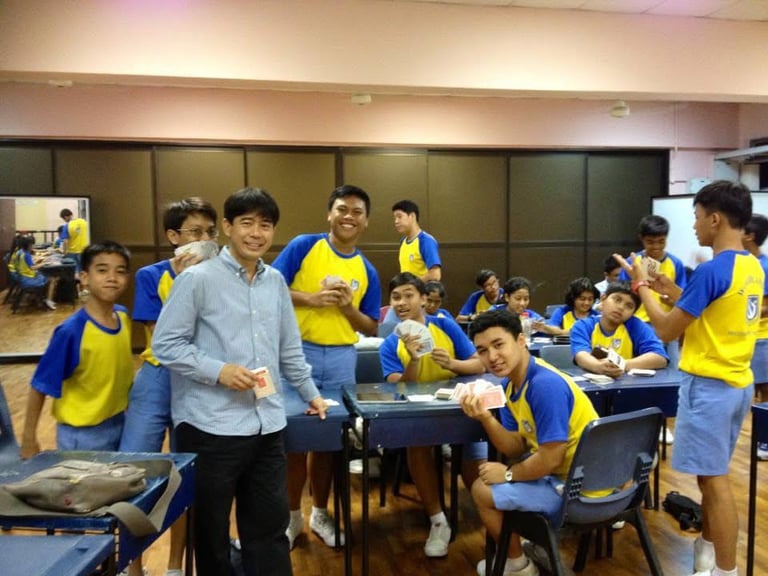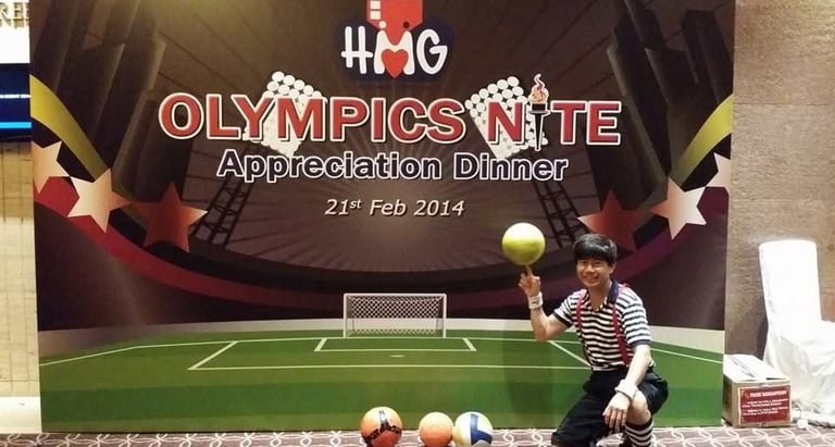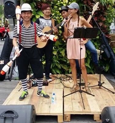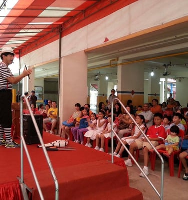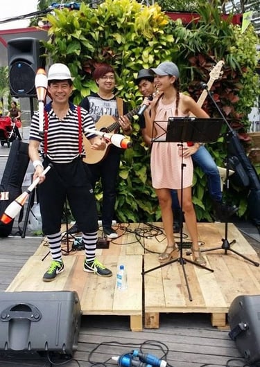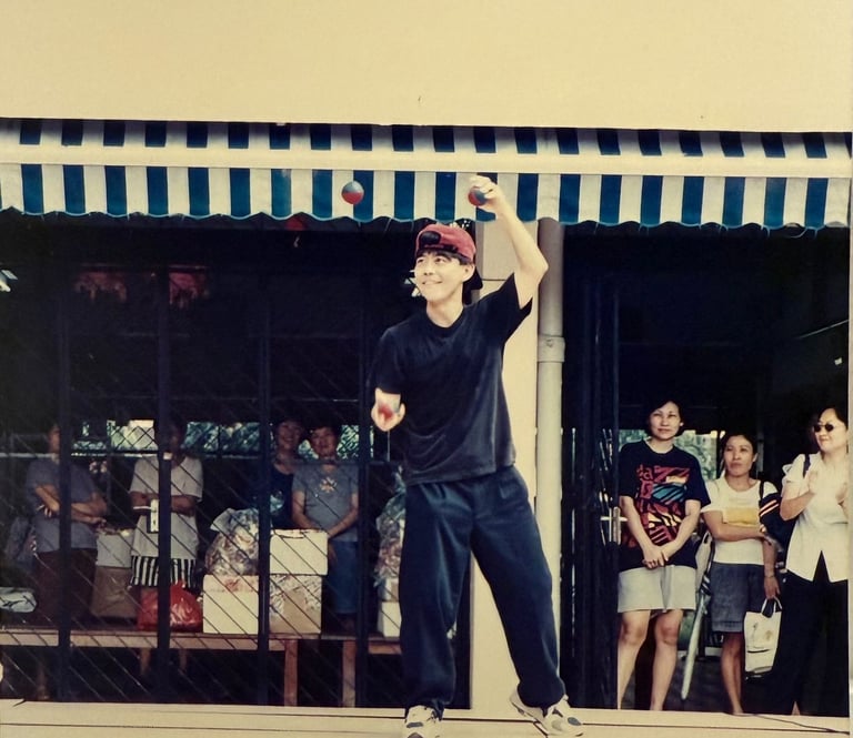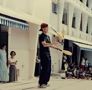 Minister Vivian Balakrishnan amazed to see that the Juggling knives were real. Posing for a picture at a grassroots event.