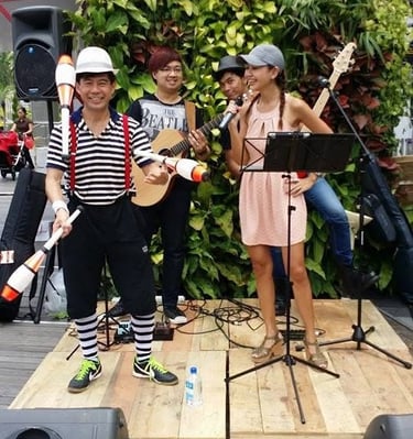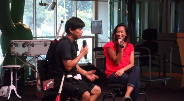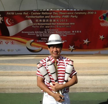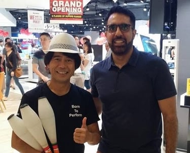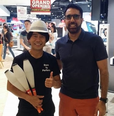 Posing for a photo with Mr Pritam Singh after a performance at Harvey Norman's grand opening at Parkway Parade.