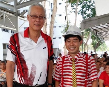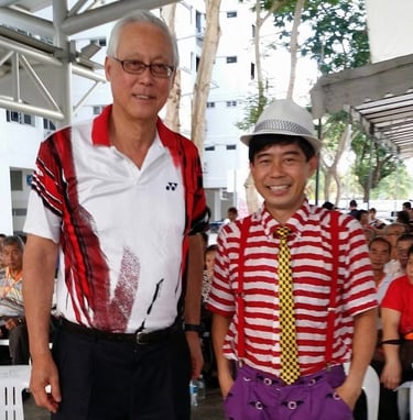 Posing for a photo with former Prime Minister and Senior Minister Goh Chok Tong at a Marine Parade Grassroots event.